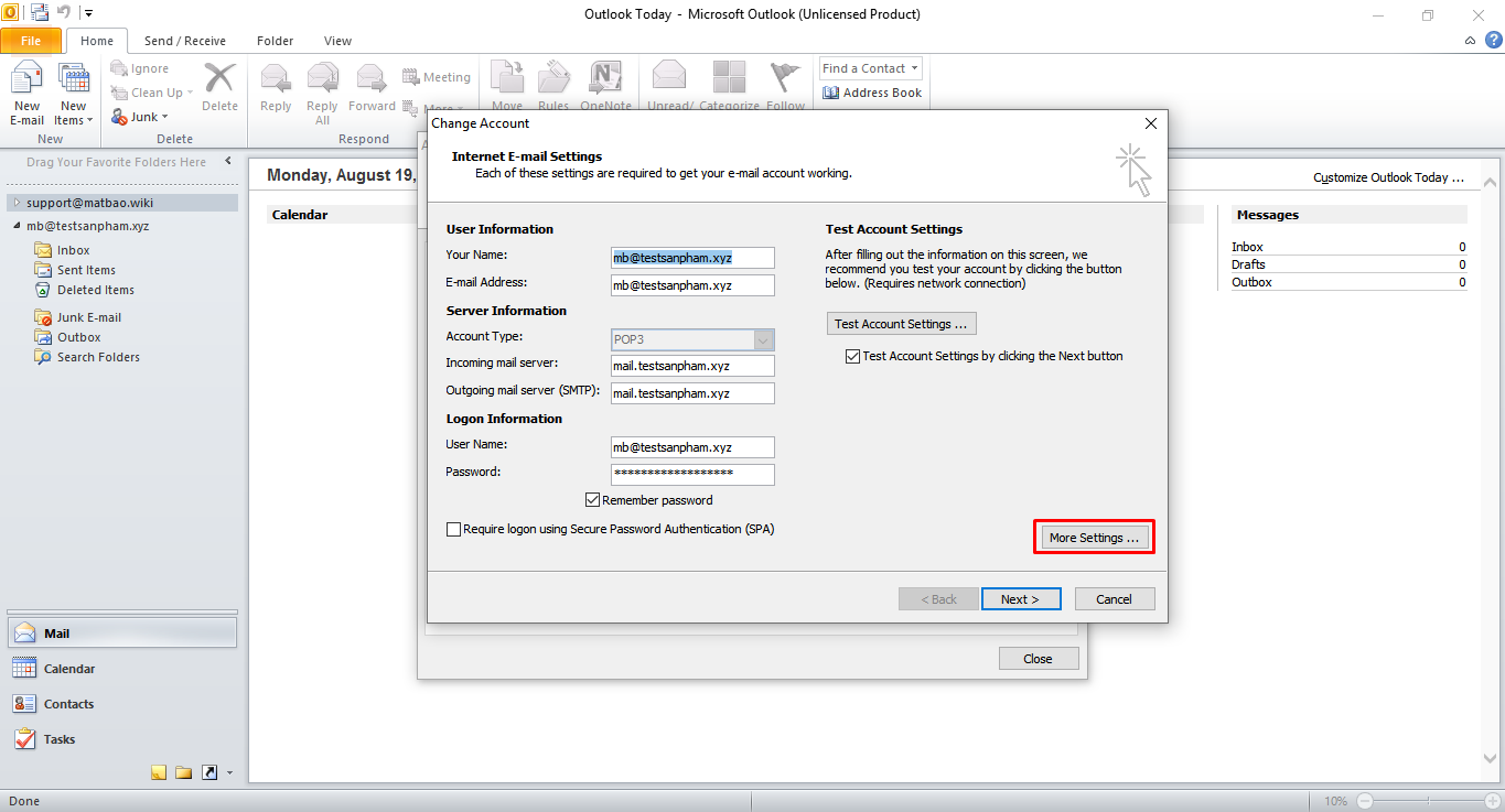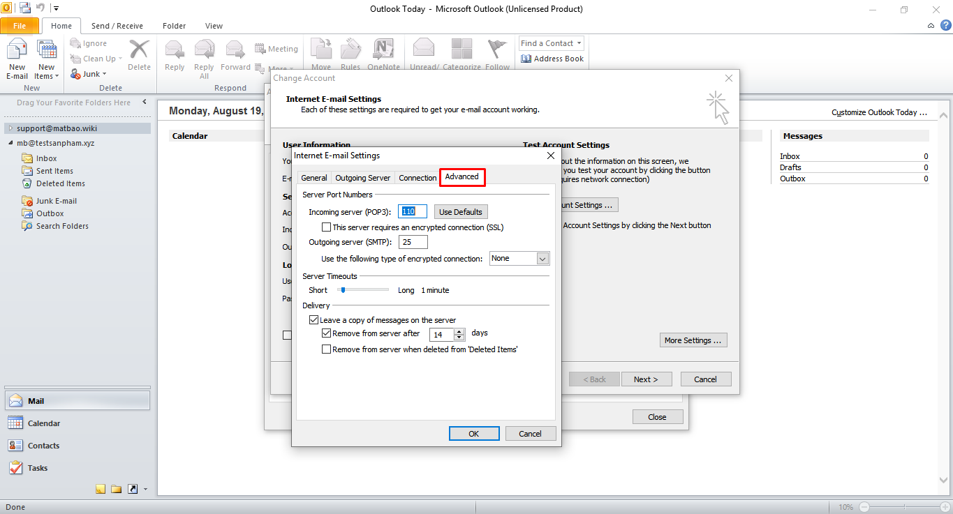 Lưu ý: Sau khi hoàn tất tất cả các bước trên, dữ liệu tại thư mục Inbox của địa chỉ trên webmail sẽ được tải về hết trên máy tính, không còn lưu trữ trên webmail (tức máy chủ email). Như thế sẽ làm giảm đi dung lượng sử dụng cho hộp thư của bạn và tránh tình trạng tải lại dữ liệu sau khi chuyển đổi máy chủ mail …